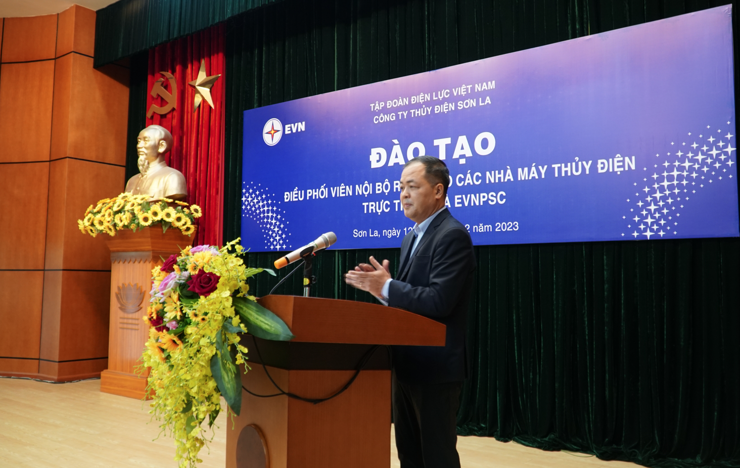 Ông Khương Thế Anh, Giám đốc Công ty Thủy điện Sơn La phát biểu tại buổi khai mạc khóa đào tạo