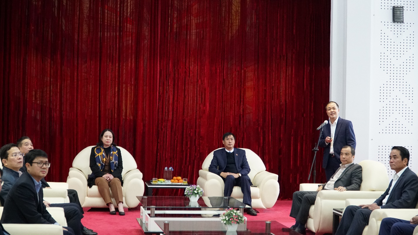Ông Khương Thế Anh – Bí thư Đảng ủy, Giám đốc Công ty báo cáo tình hình hoạt động của Công ty với Phó chủ tịch nước và Đoàn công tác