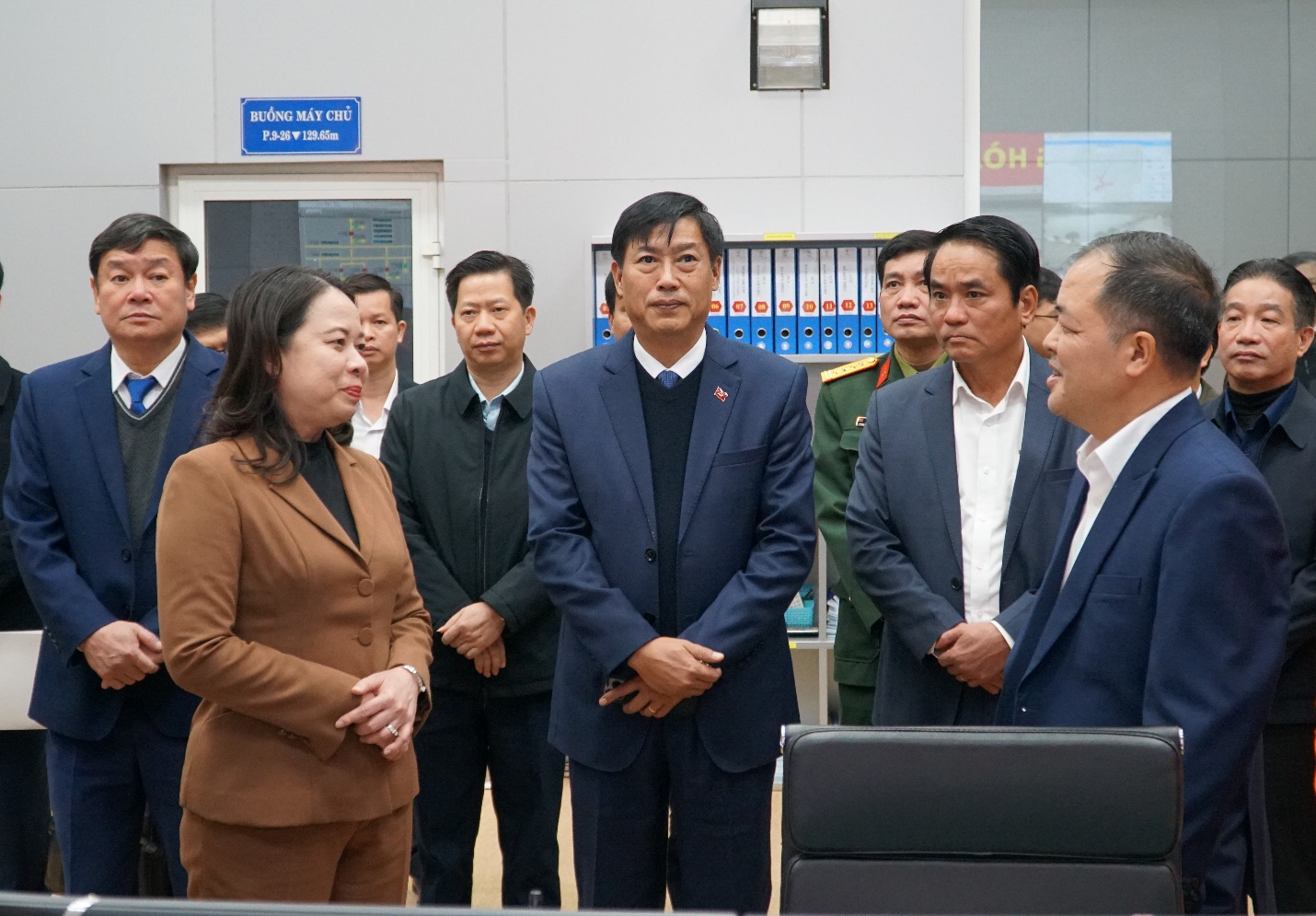 Phó chủ tịch nước và Đoàn công tác thăm phòng Điều khiển trung tâm Nhà máy thủy điện Sơn La